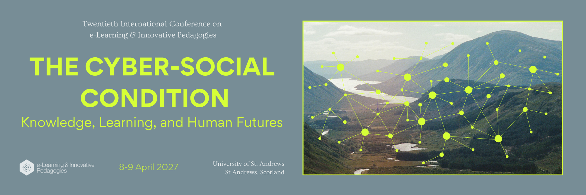 The e-Learning & Innovative Pedagogies Research Network invites proposals for the Twentieth International Conference on e-Learning & Innovative Pedagogies, held in conjunction with the Twenty-Third International Conference on Technology, Knowledge & Society, to be hosted 8–9 April 2027 by the University of St Andrews in St Andrews, Scotland, with integrated online participation via CGScholar Event (KX).